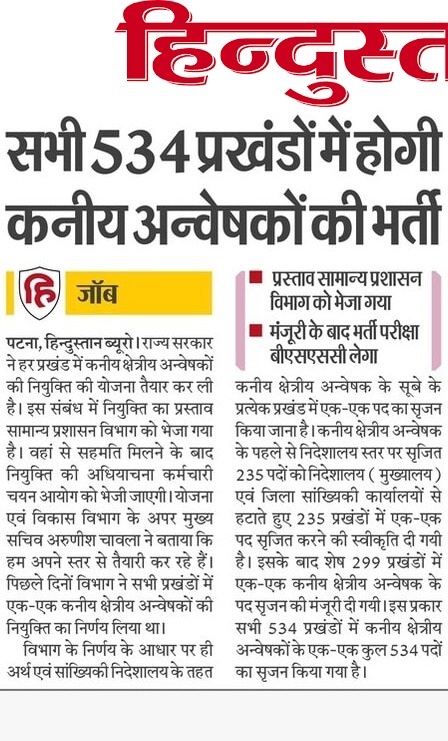 | Article Name | Bihar Block Junior Investigator Recruitment 2023-बिहार के सभी प्रखंडो में 534 कनीय अन्वेषक की होगी बहाली प्रक्रिया शुरू |